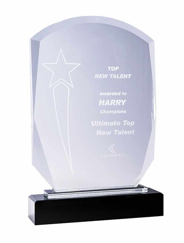 Premium award, heavyweight black and clear crystal in a timber gift box